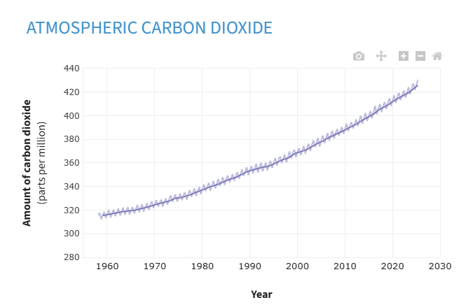 Atmospheric carbon dioxide levels increased 3.75 parts per million (ppm) to 422.7ppm between 2023 and 2024, the greatest increase in records. As the charts show, its exponential. What does this mean?